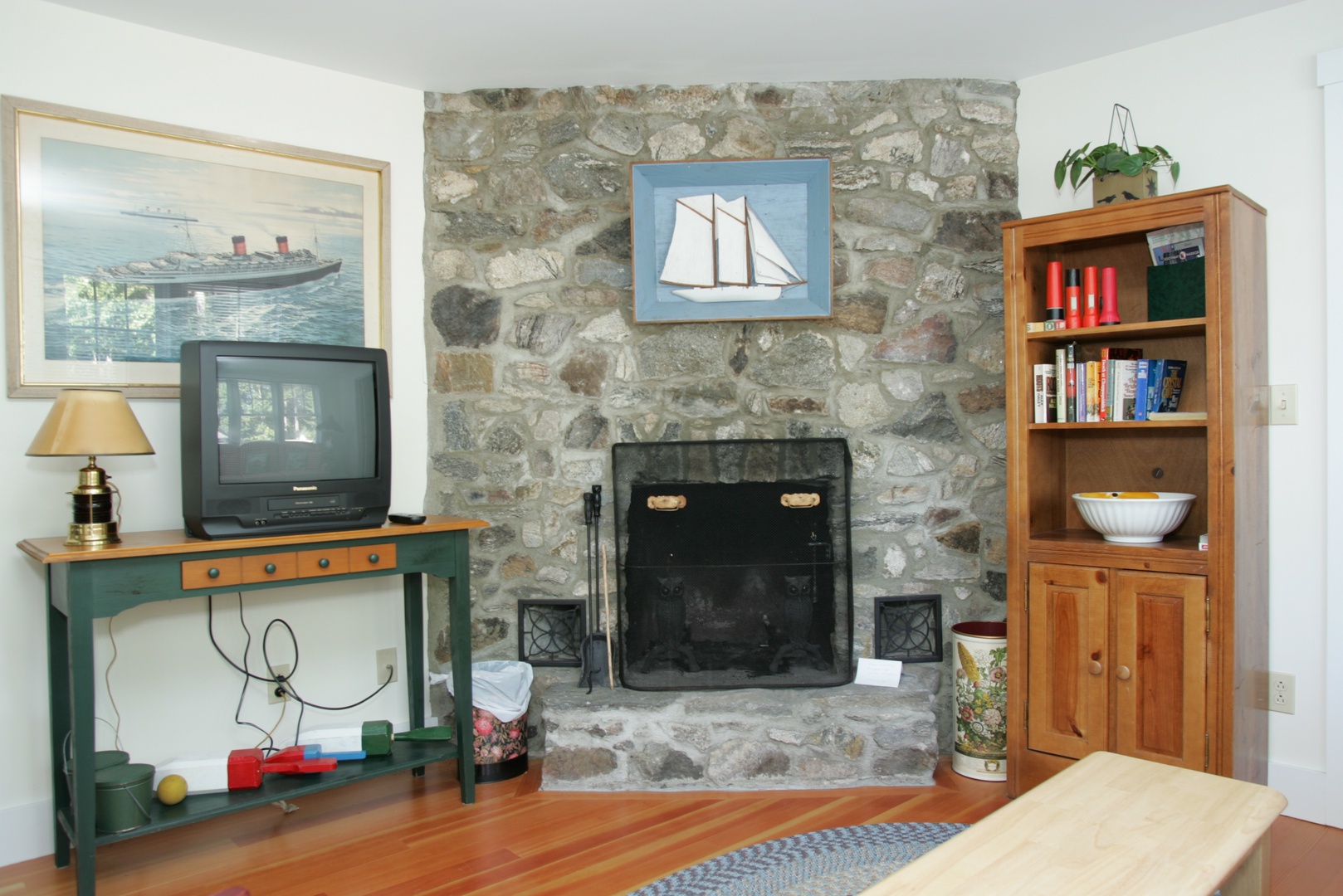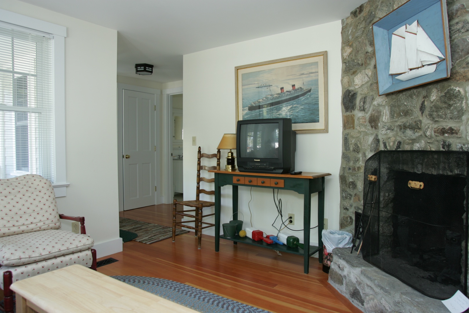 Living area and fireplace